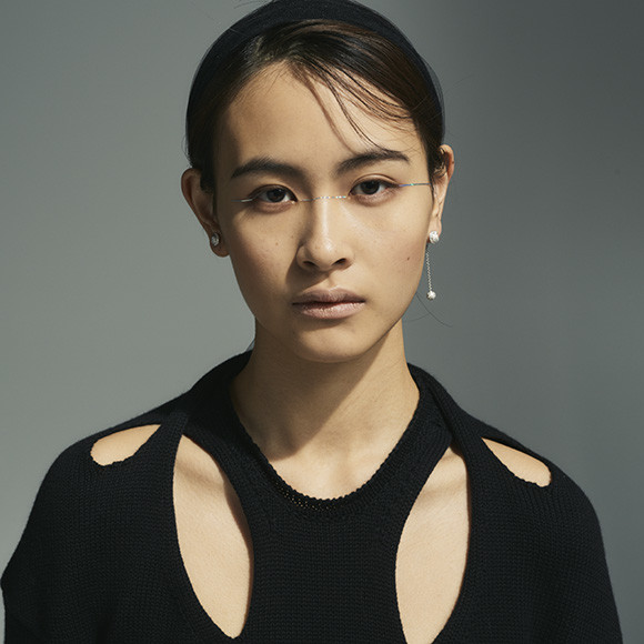 ピアス「ポセション」 (WG×ダイヤモンド)¥1,636,800/ピアジェ(ピアジェ コンタクトセンター)  ニットトップ¥132,000(予定価格)/クロエ(クロエ カスタマーリレーションズ)