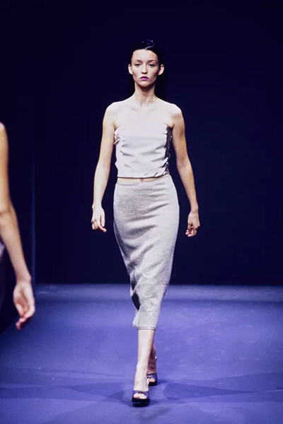 プラダ1998年春夏コレクションに登場したフランス人モデル、オドレ・マルネ。(1997年9月)