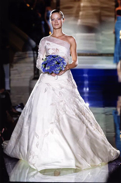 オスカー・デ・ラ・レンタ1993年春夏コレクションのランウェイを歩くエヴァ・ハーツィゴヴァ。