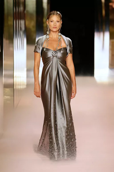 ヴェルサーチェのオートクチュールのショーに登場したケイト・モス。(パリ、1999年1月22日)