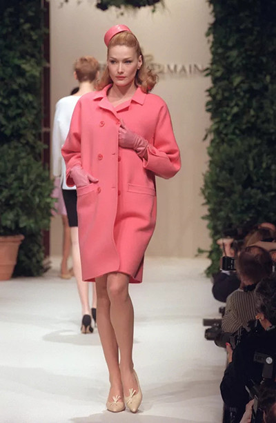 1996年1月24日パリで、バルマンのランウェイに登場したカーラ・ブルーニ。