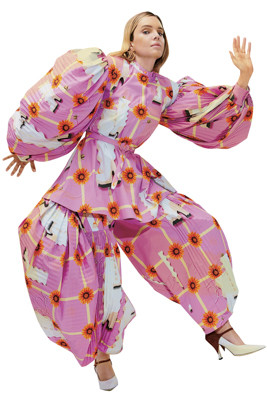 英国人アーティスト、アンセア・ハミルトンが壁紙としてデザインしたパターンをボリューミーなセットアップに。