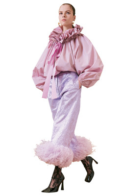 コロナ禍で広がったネガティブなムードを吹き飛ばすように、 誇張されたバルーンシルエットが急増。服のアート性を表現したロエベは、コルセットの骨組みを捉え直し、ボリュームシルエットを提案。パトゥは、レイヤードと甘い色で作るパフィなドレススタイルを表現した。