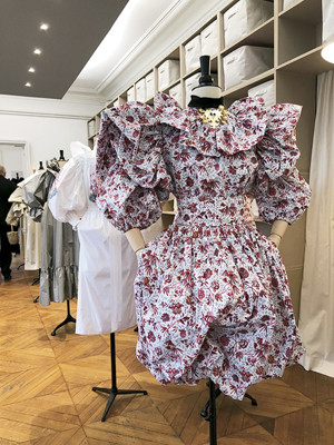 パトゥは、パリ・シテ島のアトリエでプレゼンテーション。服のファンタジーを表現したいと、ロマンティックなドレスが登場。