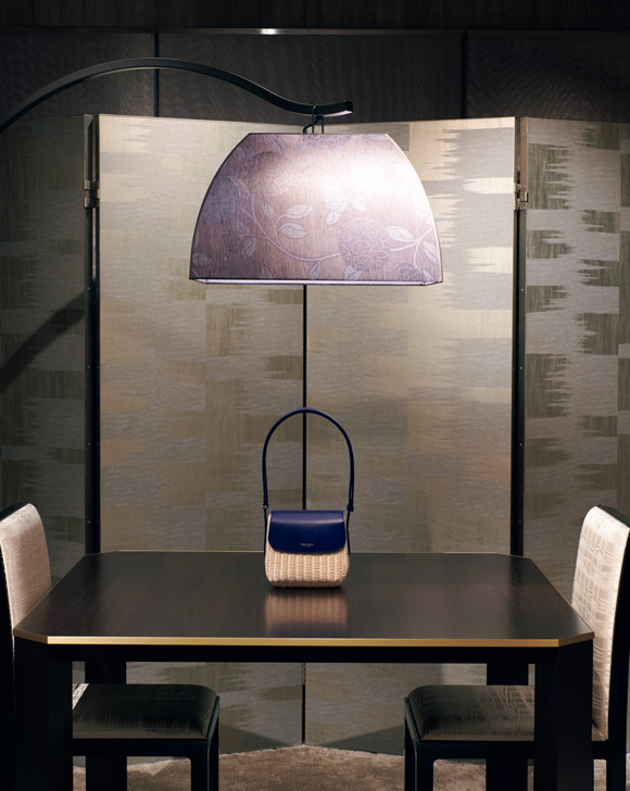 ブランドを代表するシグネチャー的存在のバッグ「ジョルジオ アルマーニ ラプリマ」に、夏らしいラタン素材が仲間入り。ネイビーのパルメラートレザーとの掛け合わせで、大人が持ちこなせる端正な印象に。