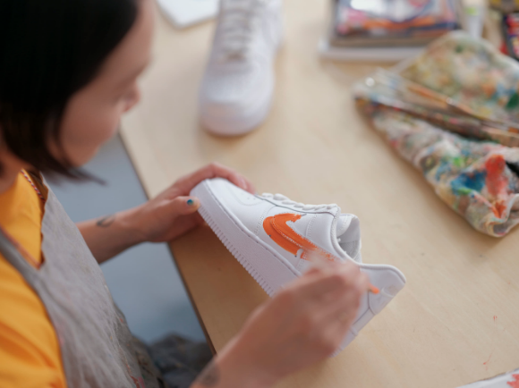 ナイキの象徴、スウッシュも手描きペイントだと、どことなく愛嬌と温かみが感じられて。
