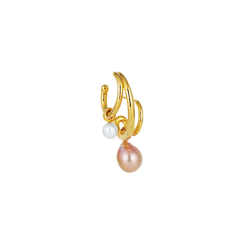 ピンク色に艶めくパールがキャッチー。イヤカフを重ね着けしているかのようなデザインも個性的。シングルピアス「トリプレット イヤリング パール」(YG×SLV×淡水パール)¥129,000/シャルロット シェネ(エドストローム オフィス)