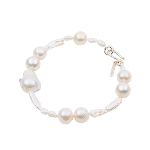 形状の異なる3種のパールを駆使したアンクレット。不揃いだからこそ、足元でちらっと見えた時に新鮮なムードを演出してくれる。「アサンブラージュパール アンクレット」(SLV×淡水パール×バロックパール)¥47,300/ ソフィー ブハイ(エスケーパーズオンライン)
