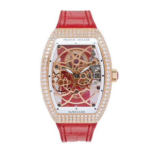 時計「ヴァンガード レディ スケルトン ダイヤモンド」(PG×ダイヤモンド、クロコダイル×ラバーストラップ、H42.3× W32㎜、手巻き)¥5,335,000(今夏発売予定)/フランク ミュラー(フランク ミュラー ウォッチランド東京)