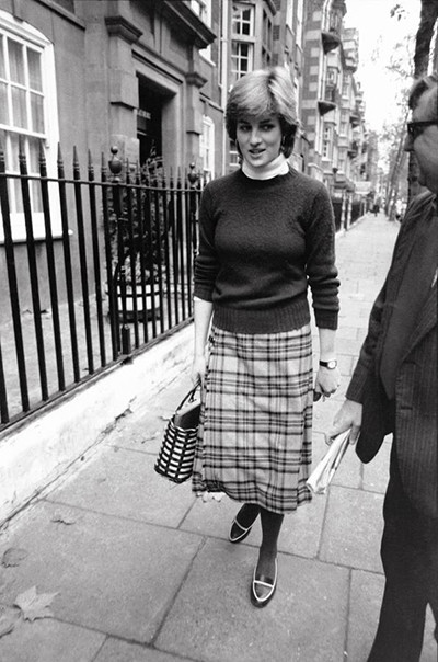 4. チャールズ皇太子との婚約前、コールハーン・コートのアパートの前で。 (ロンドン、1980年12月)