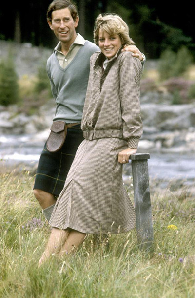 6. 新婚旅行の後、王室の邸宅であるバルモラル城を訪れた際にディー川のほとりで写真撮影を行なったチャールズ皇太子とダイアナ妃。 (スコットランド、1981年)