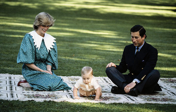 16. オークランドで写真に納まるチャールズ皇太子、ダイアナ妃と息子のウィリアム王子。(ニュージーランド、1983年4月23日)