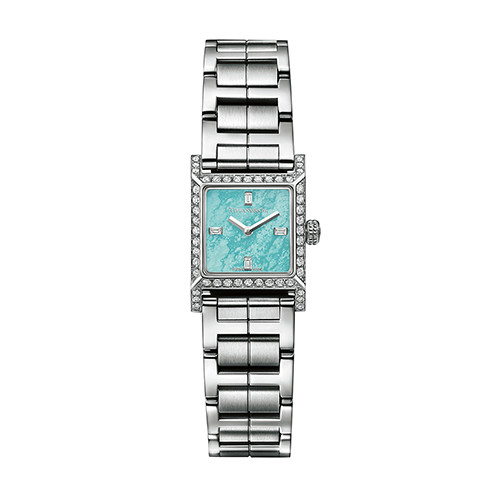 小ぶりなサイズが新鮮。文字盤はティファニーブルーを思わせるターコイズ。「ティファニー 1837 メイカーズ 16mm スクエア ウォッチ」(16×16mm、SS×ターコイズ×ダイヤモンド)¥803,000/ティファニー(ティファニー・アンド・カンパニー・ジャパン・インク)