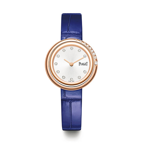 ジュエリーコレクションの代表格でもある回転リングを、ウォッチに採用。9つのダイヤモンドが、流れ星のようにベゼルを駆ける。「ポセション」(φ29mm、PG×ダイヤモンド、アリゲーターストラップ)¥1,443,200/ピアジェ(ピアジェ コンタクトセンター)