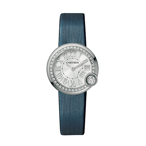 風船(バロン)のように丸みを帯びたフォルムと、4時位置に輝くホワイトダイヤモンドが名前の由来。「バロン ブラン ドゥ カルティエ」(φ26mm、SS×ダイヤモンド、レザーストラップ)¥819,500/カルティエ(カルティエ カスタマー サービスセンター)