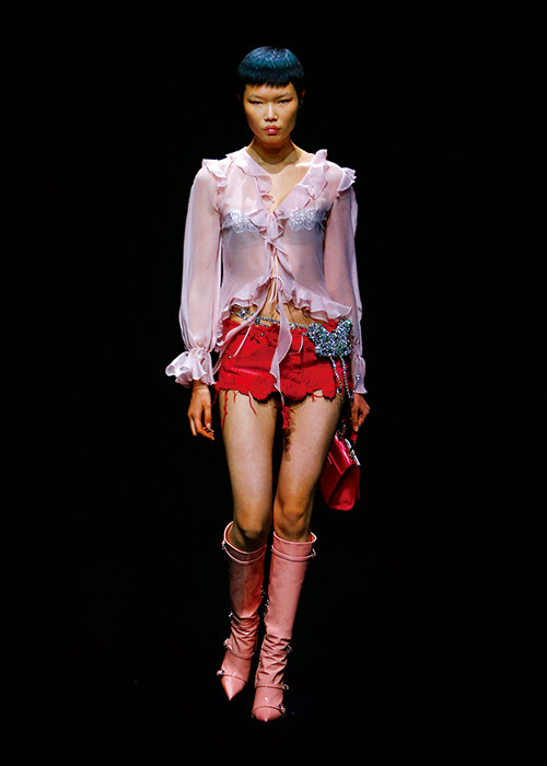 ボトムスのシルエットは二極化の様相。カーゴやワークパンツといったメンズ顔負けの極太パンツか、膝上20cmを超えそうなマイクロミニか。スタイルを決定付ける究極の選択!!