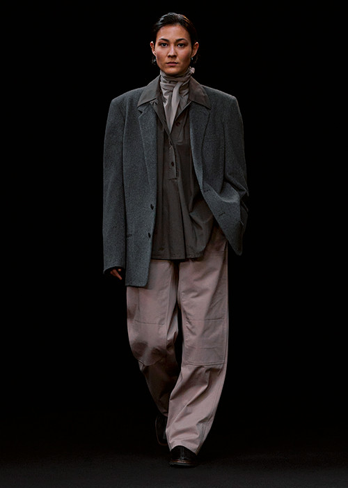 私はパンツしか穿かないから、断然パンツ派(笑)。ステラ マッカートニーがメンズライクなカーゴパンツをブーツインしているスタイルがよかった。トレンドと全然関係ない話なんだけど、この前20代のおしゃれな男の子と話してたら、腰パンしてるって言ってた。周りの子はみんなしてるんだって。太いパンツを腰パンして、ダボッと穿くのもいいかも。ミニスカートと同じ時代だよね?