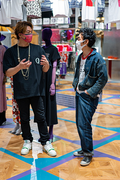 2018年に香取慎吾とスタイリスト祐真朋樹が立ち上げたブランド、ヤンチェ_オンテンバール。新しい路面店の広々とした店内には、J_Oが得意とするデザイナーたちとのコラボアイテムに加え、今季からは完全オリジナルウエアもラインナップ。話題が満載の新作がずらりと揃っていて、見応えも十分だ。
