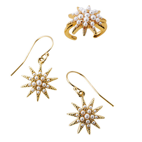 ルル フロスト:プチパールが瞬くピアス¥13,200、イヤーカフ(ともにゴールドフィルド×ガラスパール)¥13,200/バーニーズ ニューヨーク カスタマーセンター