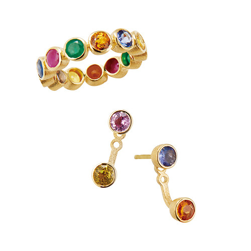 マグノリアトゥエルブ: 天然石が競演するピアス(K18YG)¥99,000、リング(K18YG)¥264,000/バーニーズ ニューヨーク カスタマーセンター