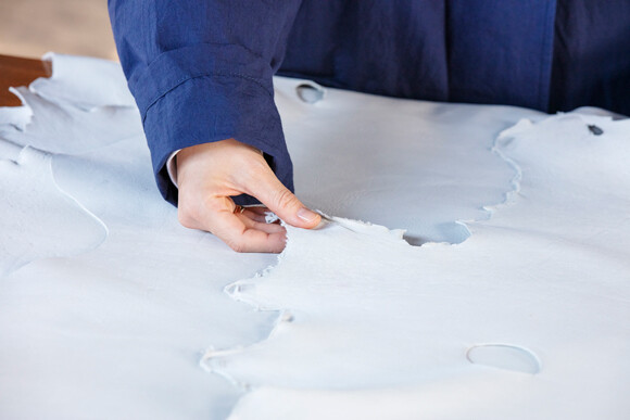 エゾ鹿革の端の形状に着目した篠原さん。