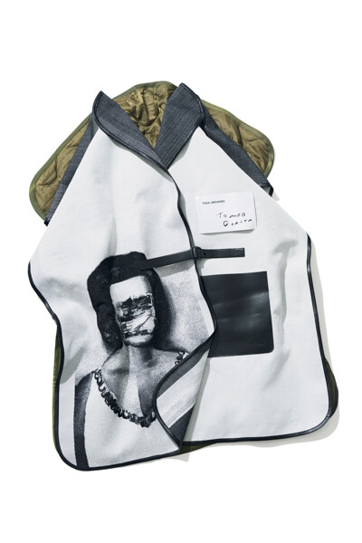「五木田智央さんの作品とトーガがとても好きで。このカプセルコレクションの発表を知り、迷わず手に入れたいと思いました。大胆なデザインですが、ブラックデニムにブーツを合わせて気負わず楽しみたいです」¥121,000/トーガ × トモオ ゴキタ(トーガ 原宿店)