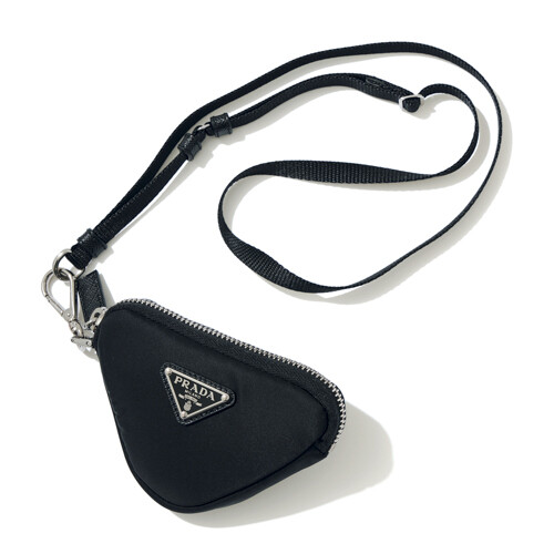 「ラフ・シモンズとミウッチャのモダンなプラダの世界を観ていると、トライアングルロゴがいままた新鮮に見えるんです。そんな気持ちもあって、このミニポーチを首にさっとぶら下げたい」(メンズ、H12×W8cm)¥69,300(予定価格)/ プラダ(プラダ クライアントサービス)