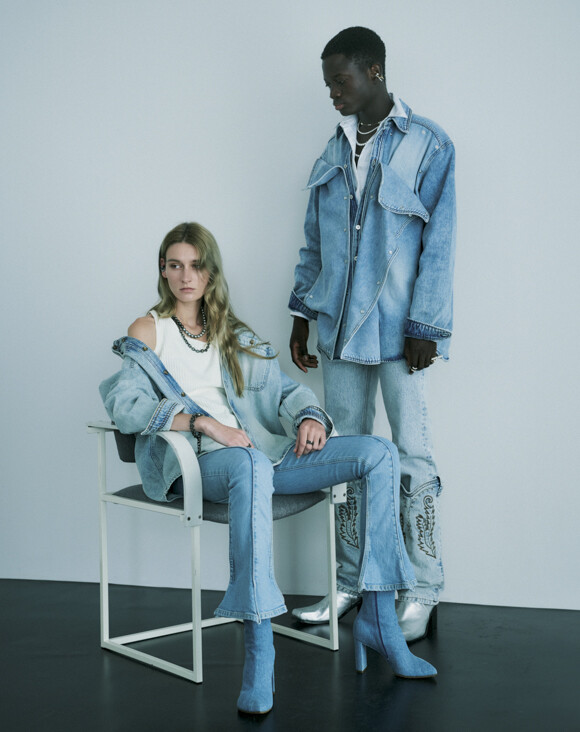 モダンなデザインに落とし込まれたパールの煌めきを味方に、カジュアルなデニムスタイルをさりげなく格上げ。