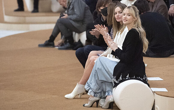 シャネルの2022年春夏オートクチュールコレクションのフロントロウに姿を見せた女優のマーゴット・ロビーと歌手のアンジェル。(パリ、2022年1月25日) photo: Abaca