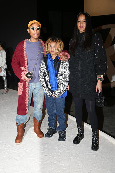 8. ファレル・ウィリアムスと息子のロケット・アイヤー・ウィリアムス、妻のヘレン・ラシチャン(パリ、2022年1月25日) photo: Abaca