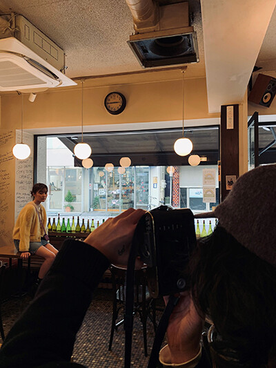 午後には、都内某所にあるビストロに移動。通常は許可されていないそうですが、今回は特別に撮影させてもらうことができました。本当にパリにいるような雰囲気の中、生田さんの若々しいジャケットの着こなしにスタッフ一同うっとり。