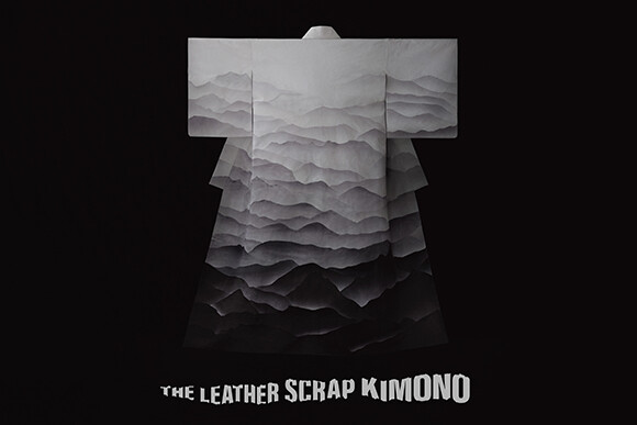 革の端を廃棄せざるを得ないことに誰より心を痛めているのは、いただいた命に敬意を払い、受け継いだ技術を注ぎ込んで革をつくるタンナーたちだと、篠原さんは革のプロフェッショナルたちとの協働を通して実感していた。衣装デザイナーとして、生地の余りを極力出さないように、きものに着想を得た服づくりを真摯に続けてきた篠原さんだからこそ、革の端は資源の宝庫である山々の風景に重なったのだろう。篠原さんの想いが詰まったこの革のきものは「THE LEATHER SCRAP KIMONO」と名付けられた。