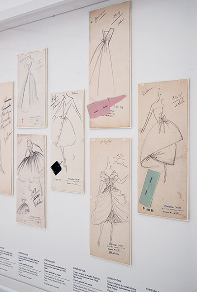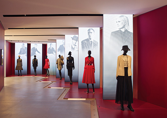 マリア・グラツィア・キウリ、ラフ・シモンズ、ジョン・ガリアーノ、ジャンフランコ・フェレ、マルク・ボアン、そしてイヴ・サンローラン。創設者を引き継いだ歴代アーティスティック ディレクターの作品が、ポートレートとショーの写真の投影されるスクリーン前に並んでいる。現代から過去へと時を遡ると、目の前に創設者のオフィスが現れる。当時のままに再現された仕事机に座るムッシュ ディオールの姿が容易に想像できる。