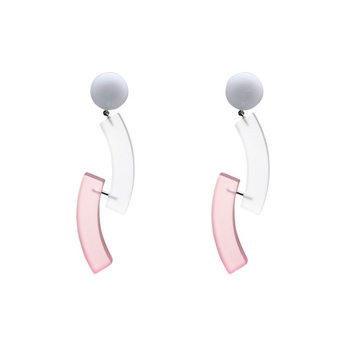 ポップアートのようなモチーフも、ピンクという魔法でチャーミングな印象に。リズミカルに耳元を揺らして。イヤリング(ブラス×コッパー×アクリル)¥47,300(予定価格)/ジョルジオ アルマーニ(ジョルジオ アルマーニ ジャパン)