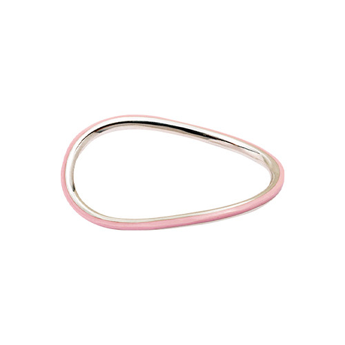 ハードな印象になりがちなダブルリングを、流れるような曲線と甘いカラーパレットによってロマンティックにアップデート。ありそうでなかったピンク×シルバーのカラーコンビネーションもどこか新鮮に映る。リング(SLV×エナメル)¥24,200/リューク