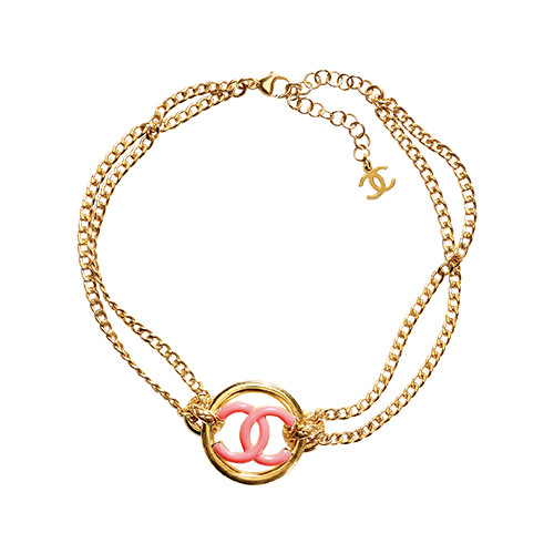 メゾンの象徴であるロゴを愛らしいピンクでモダンかつフレッシュに表現。ゴールドに輝くチェーンとの相性も抜群。あえてTシャツなどに合わせてカジュアルダウンしてみても。ネックレス(メタル×レジン)¥91,300/シャネル