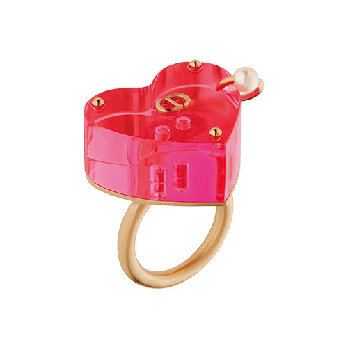弾けるようなネオンピンクとハートモチーフ、そして小さなパールのリングに目が釘付け。春夏のコーディネートの主役になりそうなハッピーな存在感を存分に楽しんで。リング(メタル×プレキシ×レジンパール)¥70,400/ディオール(クリスチャン ディオール)