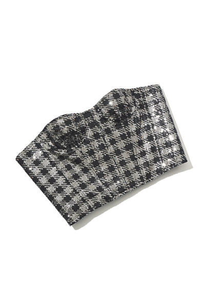 6. スパンコールが煌めく、モノトーンの千鳥格子でマチュアな色気を。コルセット ¥47,300/ロク(ビオトープ)