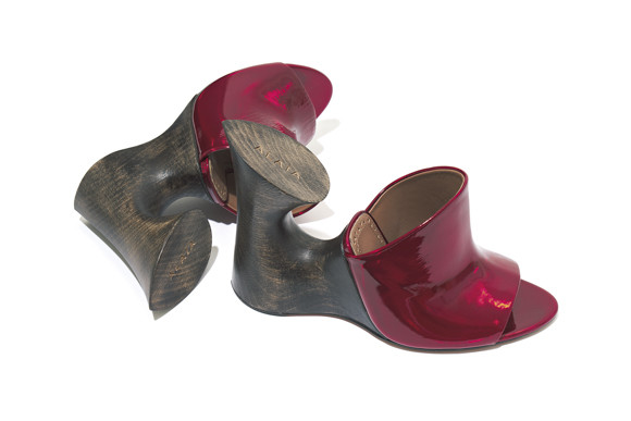 5. 赤いアッパーとユニークなウッドヒールがフェティッシュな一足。ミュール(ヒール11cm)¥145,200(予定価格)/アライア(リシュモン ジャパン)