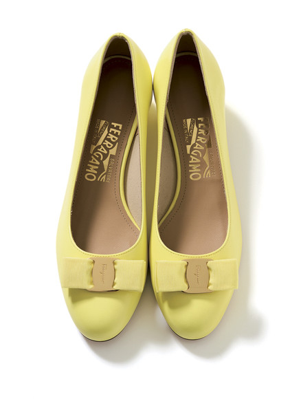 8. シグネチャーシューズのヴァラ。ペールイエローが新鮮。(ヒール3cm)¥86,900/サルヴァトーレ フェラガモ(フェラガモ・ジャパン)