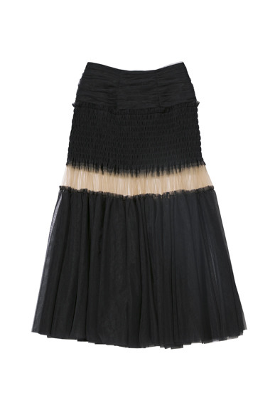 13. ブラックとヌードなベージュ。透け感のあるチュールを切り替えたボリューム感たっぷりのスカート¥50,600/フェティコ(ザ・ウォール ショールーム)