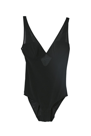 6. ラウンドのシェイプでバスト部分が覆われたボディスーツは、大人のセカンドスキンとして重宝すること間違いなし。¥13,200/ランジェリーク(エム)