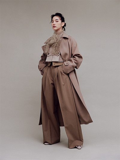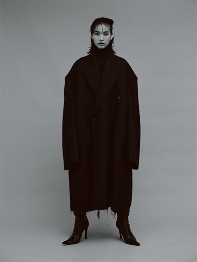 オーバーサイズのコートに、鋭いトウのサイハイブーツ。切りっぱなしのヘムとドロップショルダーで、少しの遊び心を漂わせたマスキュリニティ。黒は誰もが挑戦しやすいベーシックカラーであり、万人に似合う色。だからこそ、未知なる可能性を秘めている。着る人の新しい個性を引き出すオールブラック。