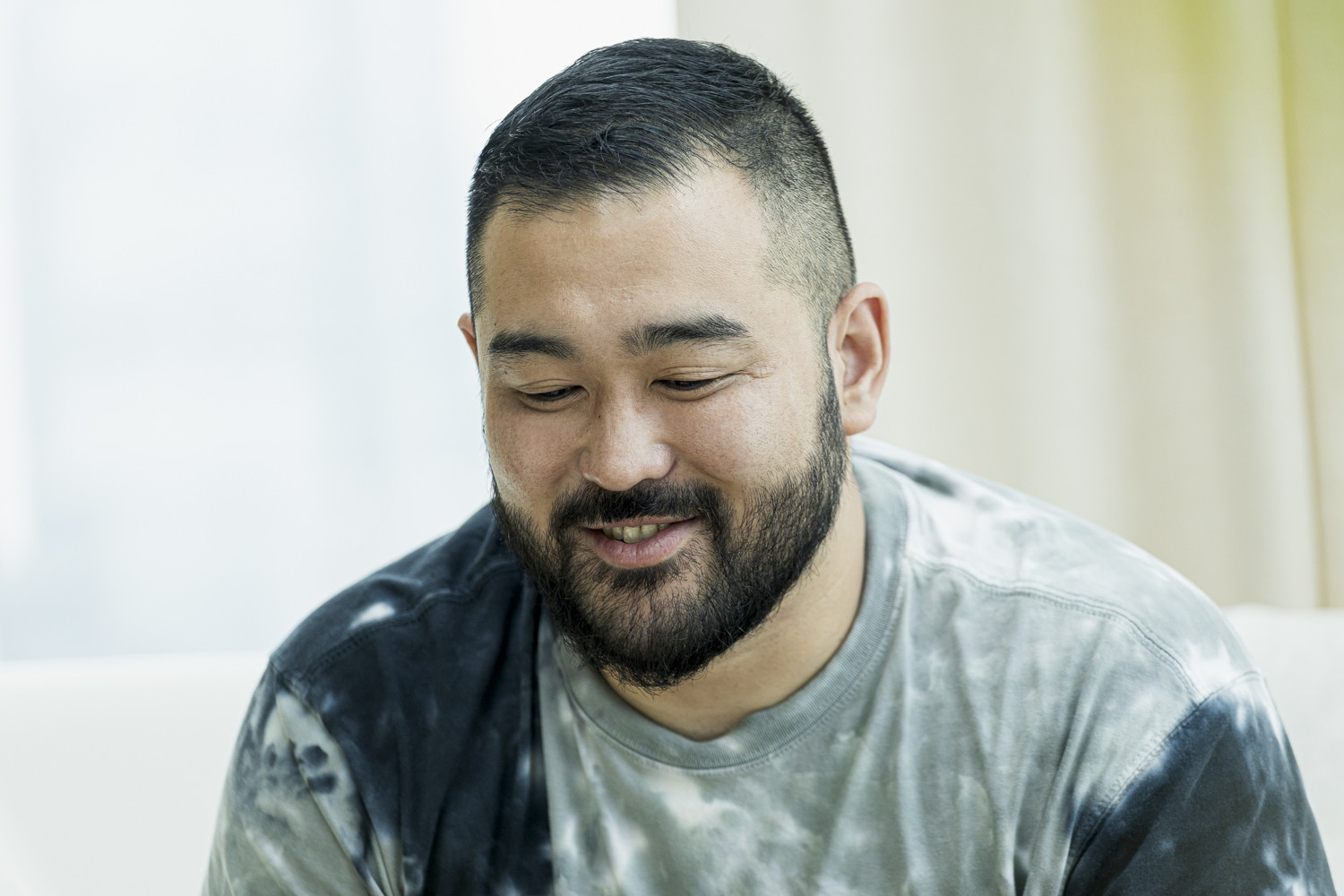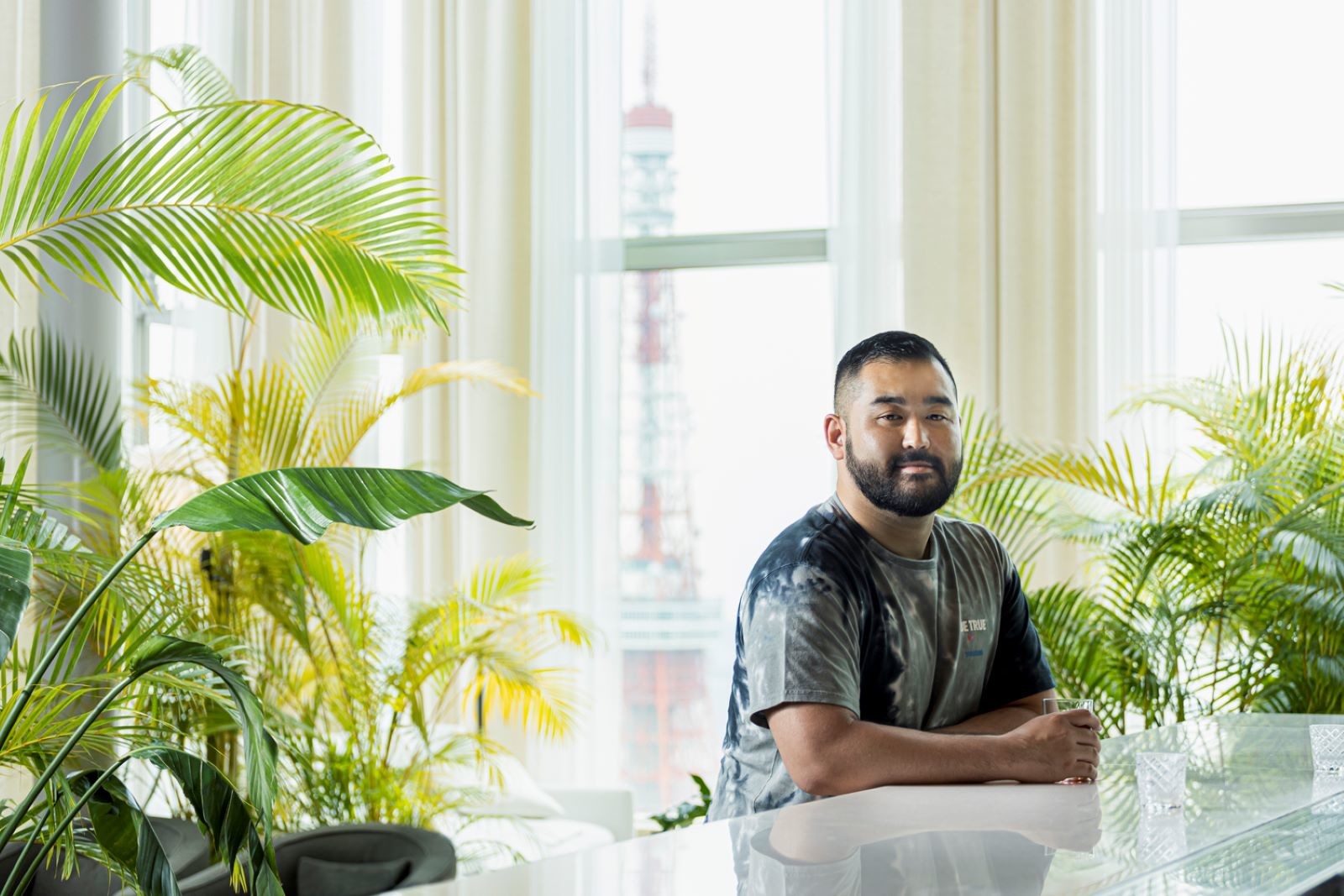 トモ コイズミのデザイナー、小泉智貴さん。東京エディション虎ノ門のロビー バーにて。