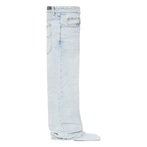 一見デニムパンツのようで、実はそのディテールを施したブーツというヒネリが痛快な1足。