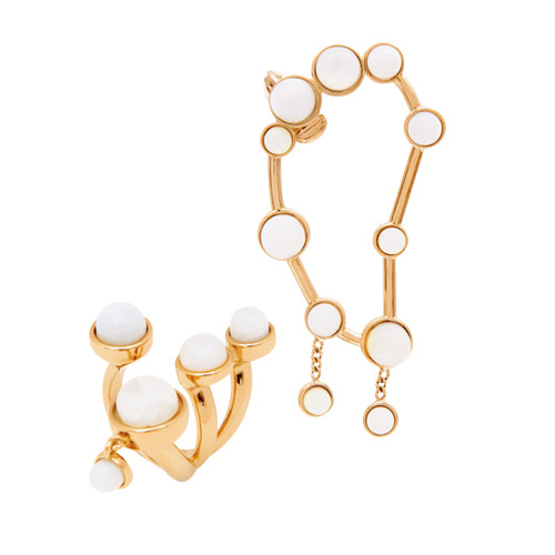 ゾディアック ジェミニ イヤリング(ブラス×マザーオブパール×ホワイトストーン)¥66,000、リング(ブラス×マザーオブパール×ホワイトストーン)¥61,600/ともにクロエ(クロエ カスタマーリレーションズ)