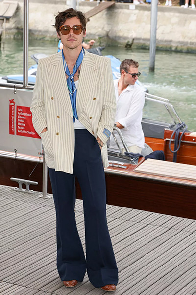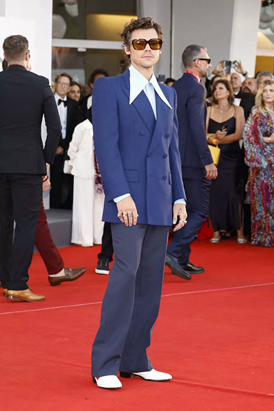 第79回ヴェネツィア国際映画祭にグッチで登場したハリー・スタイルズ。(2022年9月5日)