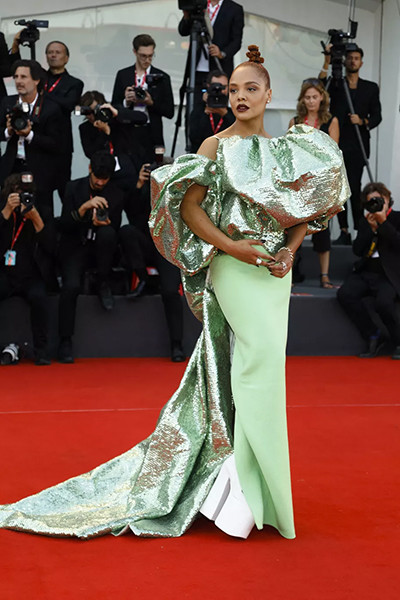 第79回ヴェネツィア国際映画祭でヴァレンティノを着たテッサ・トンプソン。(2022年9月1日)