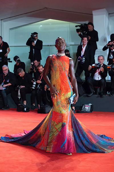 第79回ヴェネツィア国際映画祭でのパトゥーを着たエイミー・ルー・ウッド。(2022年9月1日)
