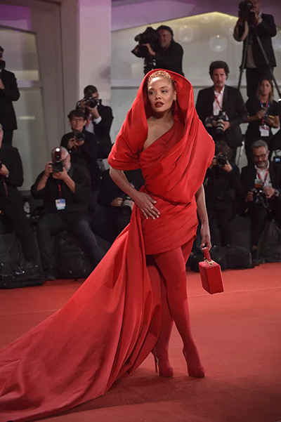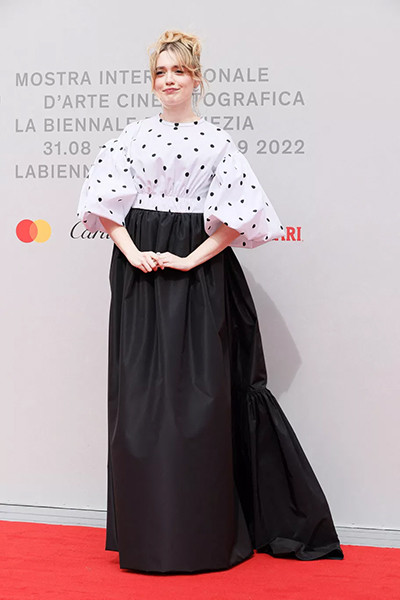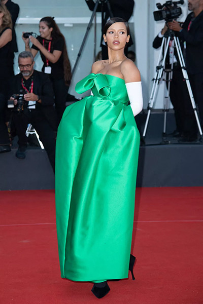 第79回ヴェネツィア国際映画祭でバレンシアガを着たテイラー・ラッセル。(2022年9月2日)